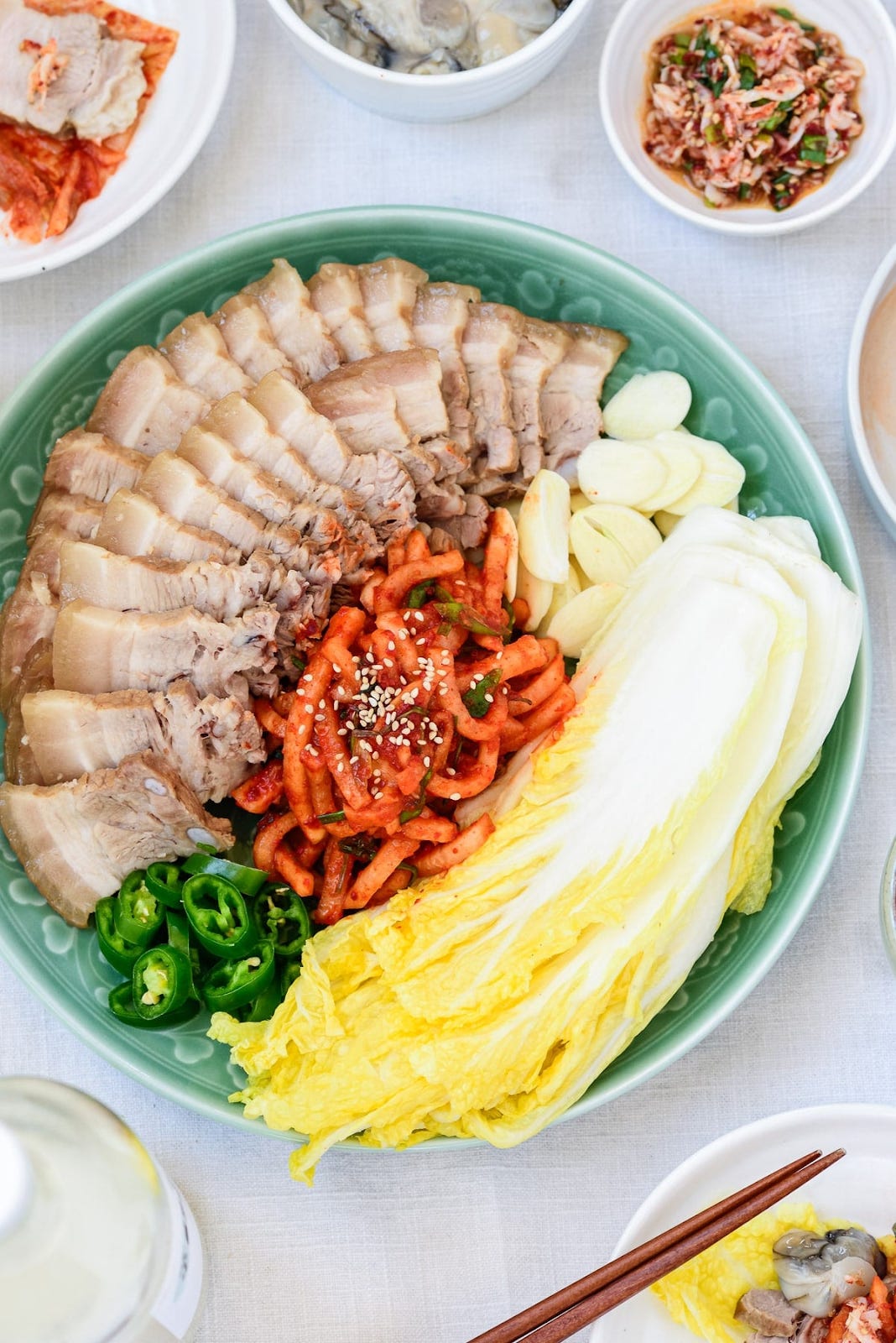 Bossam 보쌈. Fatty pork served with veggies wraps